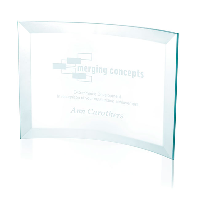 - The clean and simple lines of this curved glass award make it a great desktop addition.